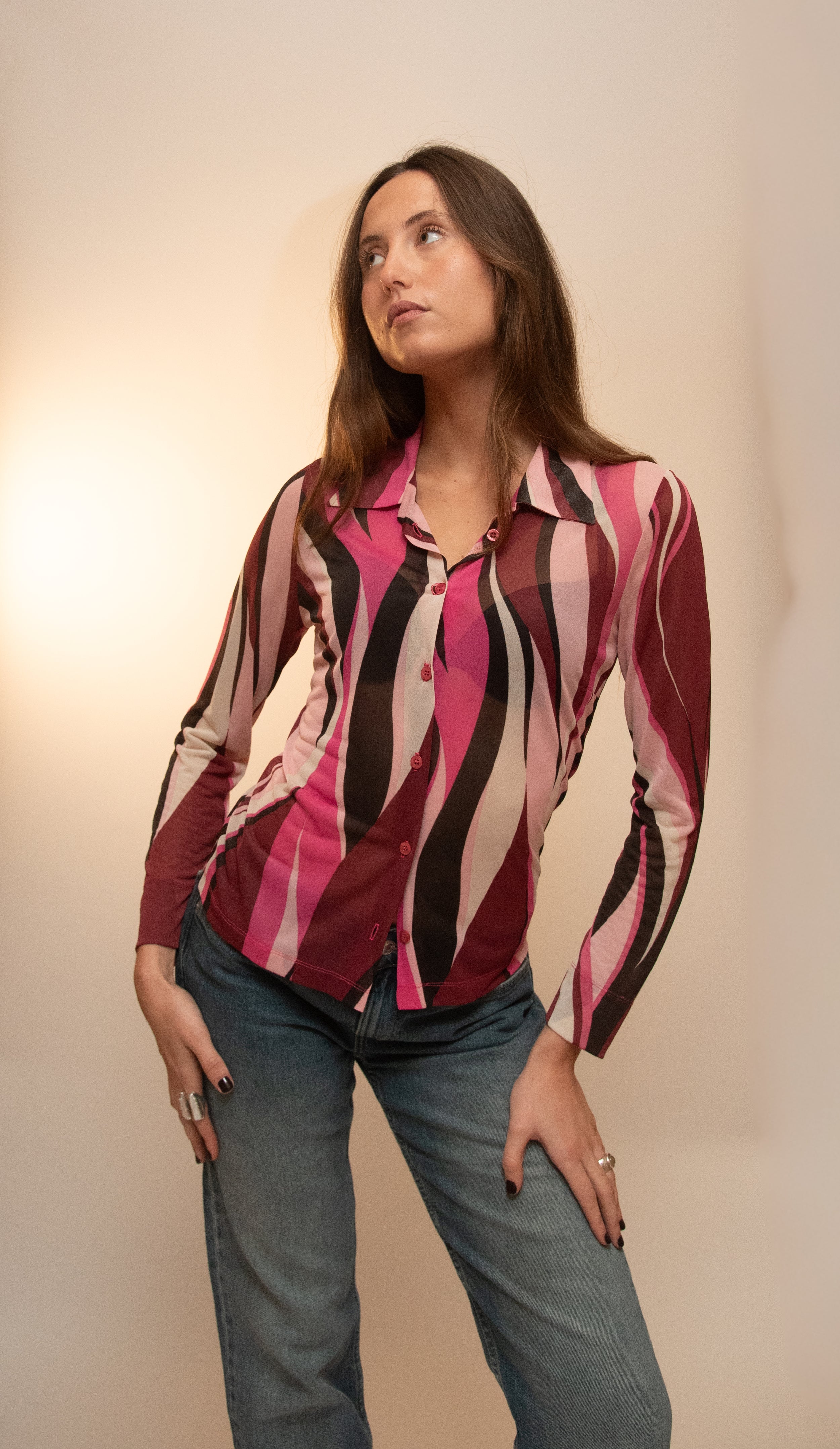 Camisa color rosa de estampado de cebra. Un poco translúcida !!