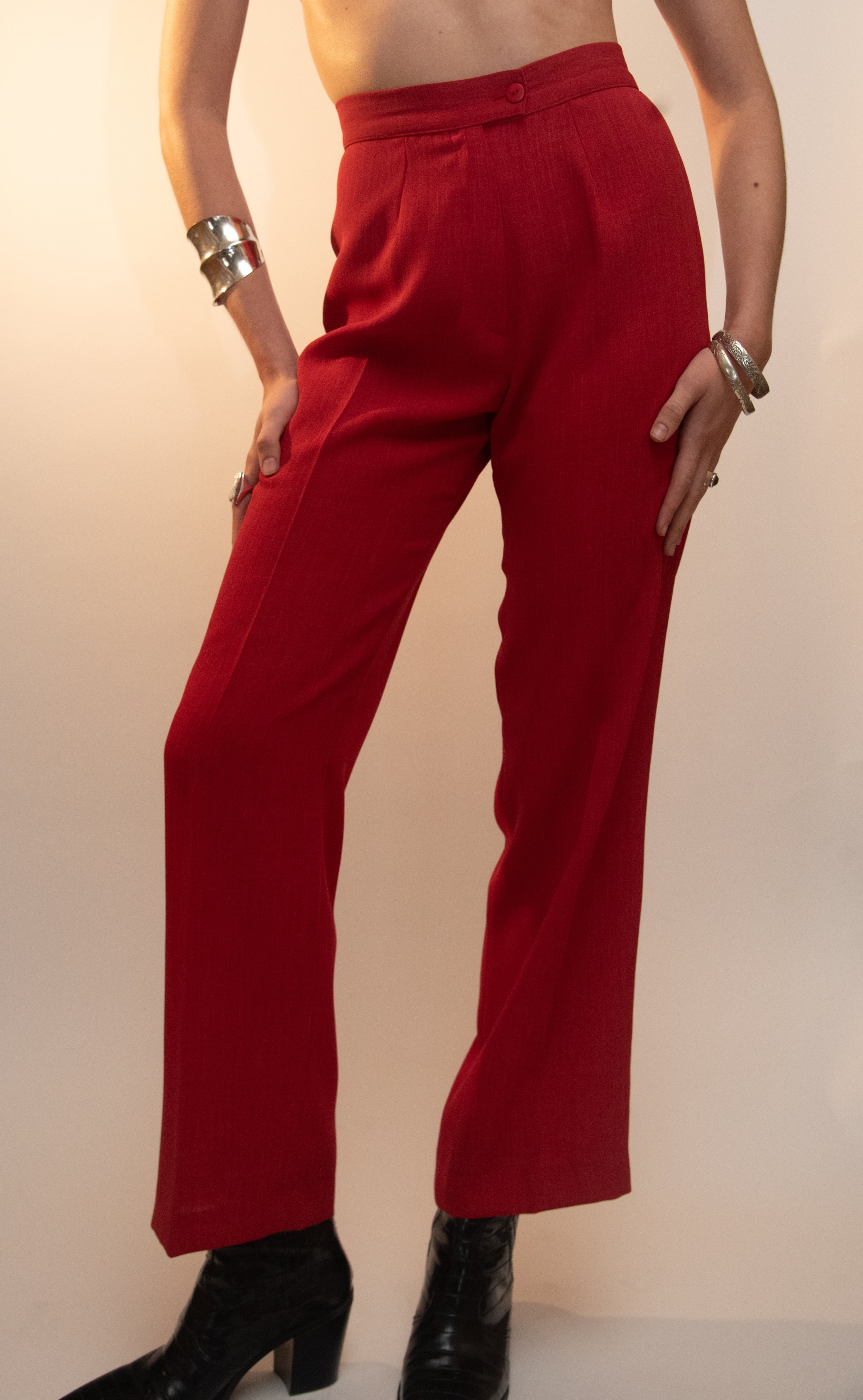 Pantalón rojo de corte recto y tejido ligero con pinzas.